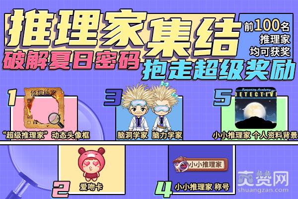 活动期间,快来参加“夏日密码破解行动”吧!通过每日10:00公布的线索,破解真实答案,如果您成功破解密码,即可获得每日推理嘉奖礼包!