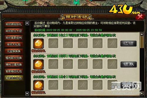 当玩家达到名士,就可以在限时活动中领取相应的永久礼包中的橙色武将碎片,但是只能领取一次,每日礼包是可以叠加领取的,在年底时,玩家还可在官职返利系统中获得官职奖励,只是也是一次哦!