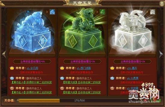 每天0点,玉玺吸收持有者300点天命值,若持有者身上的天命值不足,天命值将被扣除且所有玉玺将自动寻找新的持有者:越活跃的玩家越高概率在0点时被选中为新的玉玺持有者。