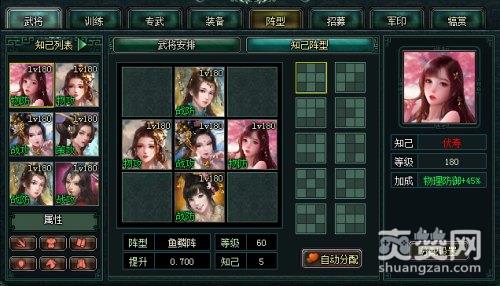 在校场里面还有10个阵型,可以随便搭配武将,每个阵型提升的战法防御力、计策攻击力、反击、暴击等都各不相同,各位主公们,可以根据敌方的阵型,来调整最为合适的阵型进攻,当然还有我们的知己阵容,知己阵容也是有阵型的哦,每个阵型所增加的物理、防御、计策等各不相同,在搭配武将上阵的同时,一定不要忘记知己阵容哦!