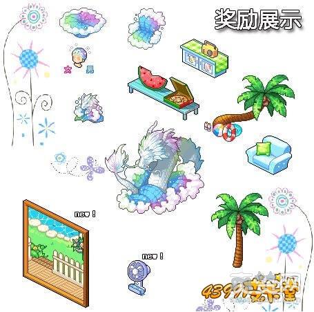 收集浪花,玩家可以在孙杨杨处兑换徽章和家具奖励。