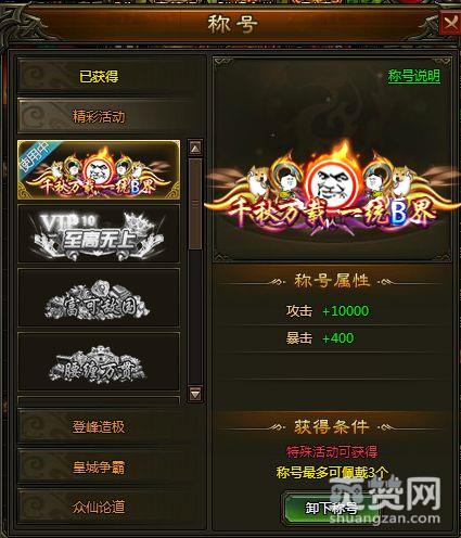 人物头上最多可以显示3个称号,所有激活的称号属性都可叠加,不受显示数量的影响。