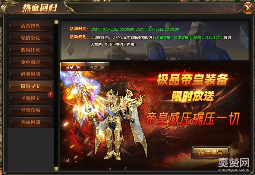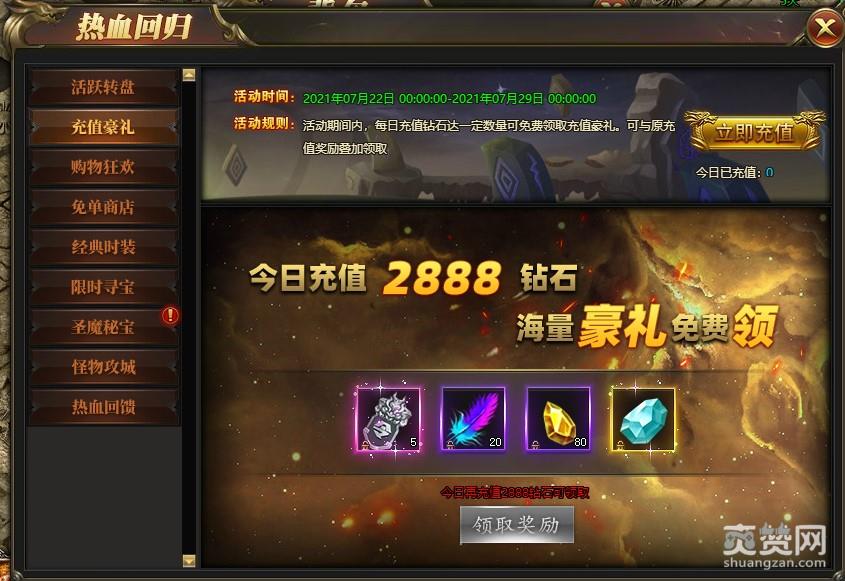 《圣魔印》九大限时活动,让这个盛夏不再寂寞!除了之前提到的经典武器“热血裁决”的回归和极品称号免费兑换,还有超多惊喜等你开启!有积累活跃度就能抽奖的福利转盘、让人眼红的充值豪礼、天天折扣的购物车狂欢、锦鲤傍身的免单商店……还有各种寻宝、攻沙等特色活动!