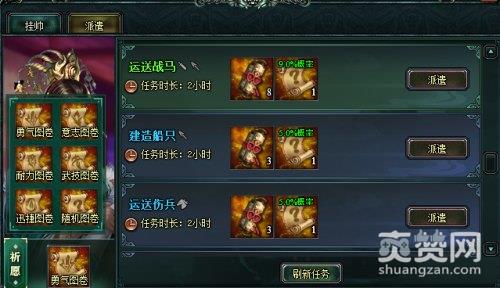 派遣武将对不同品质任务是有要求的,每个任务对应兵种也是有要求的,全部上阵的武将会有兵种要求,奖励100%,可以获得鬼谷兵书和随机图卷。随机图卷是对精锐部队升级元素的必需品,派遣品质及兵种是有限制的,但不会被强制,奖励会减少,派遣结束前,被召回不获得任何奖励哦,各位主公在派遣武将的时候要慎重,谨慎搭配武将哦!