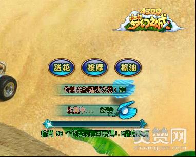 炎炎夏日,皮肤干燥?油腻?不要紧,赶快去参加《4399梦幻之城》沙滩派对吧,不但能享受100%日光浴,更能享受送花、按摩、擦防晒油等激情互动。每日两次,只有两次!千万不要错过哦!