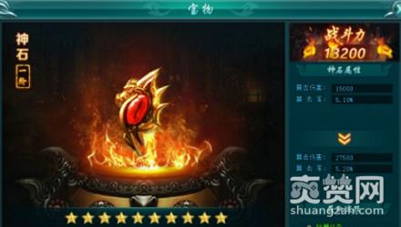 神石在180级开启。神石可消耗神石精华进行提升,每阶共十颗星,点亮十颗星后需使用宝物结晶进行突破进阶。神石精华可通过除魔任务和藏宝图挖宝等方式获得。提升神石等阶可为玩家提升大量暴击伤害属性和战斗力。