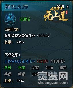 已经强化好的装备,会获得强化大师加成。全部强化1级就能获得哦。