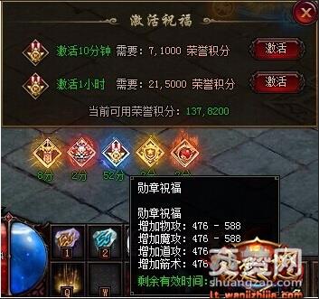 虽说开启祝福系统需要一定的代价,可是开启后所获得的力量也是非常的可观的!在玩机之家《雷霆之怒》中,祝福系统的各项祝福技能效果不同,大家可挑选自己喜欢的祝福技能激活使用。勋章祝福,攻击+476 - 588;军衔祝福,攻击+138 - 436;伤害吸收+4%;元石祝福攻击,+758 - 1140、暴击力+877、暴击伤害吸收+0.6%;兵魂祝福,攻击+1857 - 2775、暴击力+1190、内力值+6%;觉醒祝福,攻击+1187 - 1661、暴击力+3690、伤害反射+0.45%!