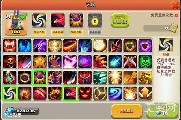 组合天赋威力强大,往往是战斗的胜负关键。但是越是强大的天赋需要越多的天赋组合。重修天赋是从所有天赋中随机,要得到想要的天赋难度很大!但是还好,重修天赋的时候还可以锁定天赋,只要重修到了其中一个关键天赋,即可锁定该天赋,继续重修其他天赋,这样可以大大降低重修天赋的难度。但是锁定天赋最多锁定两个,所以,为了威力巨大的组合天赋,还是需要一点点的恒心的。系统每天有5次免费的基础重修天赋,一定不能错过,为英雄搭配出合适的天赋一定可以让你的实力得到大大的提升
