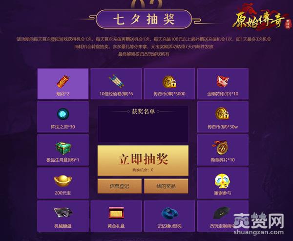活动期间每天首次登陆游戏就可以获得一次抽奖机会,每天首次充值在获得一次抽奖机会,每天充值100元以上额外获得抽奖机会一次,即一天最多三次机会,这样得到的豪华礼品的几率又大大增加啦!这次抽奖的礼品有烟花,十倍经验卷轴,传奇币,金刚符印,阵法之灵,极品生肖盒,200元宝,勋章碎片等~,这真是提升战力的最好时机呀!而且除了游戏里的奖励外,还有机械键盘,黄金礼盒,雨伞等~。还等什么?快来抽奖呀!