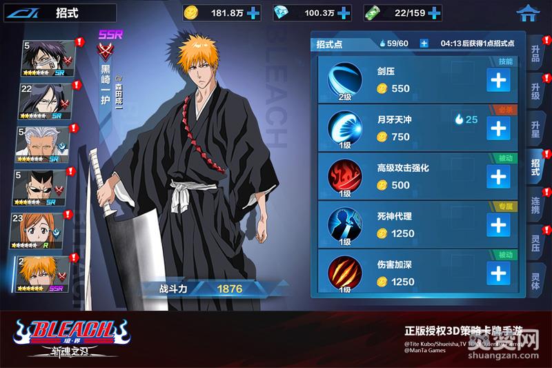 普攻技能【剑压】,将刀上的灵压挥出去攻击敌人,对敌方单体目标造成伤害的同时提升自身暴击率;必杀大招【月牙天冲】,将斩魄刀上的灵压变成月牙形的刀刃,从刀身飞出攻击敌人,对敌方纵列目标造成伤害;专属招式【死神代理】会对虚造成额外加成伤害!