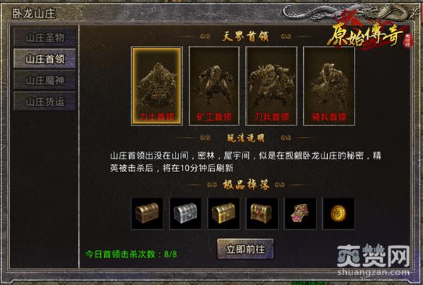 卧龙山庄分为山庄圣物,山庄首领,山庄魔神,山庄货运