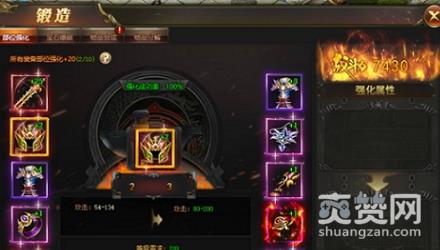 部位强化可以通过消耗强化石强化装备部位的属性,所有部位达到一定的强化等级还可获得套装效果加成。