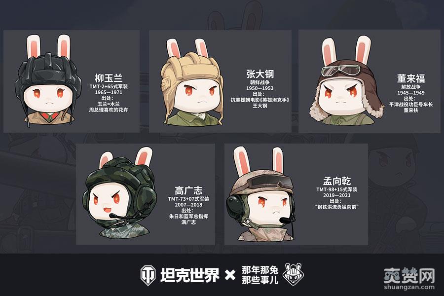 如果了解国漫《那年那兔那些事儿》中的那些经典名场面,那就一定会对兔子们勤劳勇敢、个性鲜明的特质有深刻印象。这次,萌兔们派出了五名英雄代表来到《坦克世界》的前线营地,等待被您征召并会犒赏完成挑战的玩家。他们分别是车长高广志、炮手柳玉兰、驾驶员孟向乾、通信兵董来福和装填手张大钢。