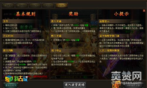 进入方式:进入“活动大厅”,点击“云宫之战”标签,再点击“进入云宫战场”前往