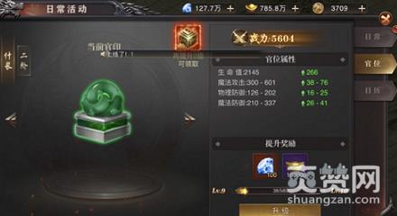 官位系统在玩家完成“王城复命”任务后开启。提升官位等级可领取官位装备,穿戴后不仅降低PK中受到的伤害还可大幅提升角色属性。提升官位等级需要每日完成活跃任务。