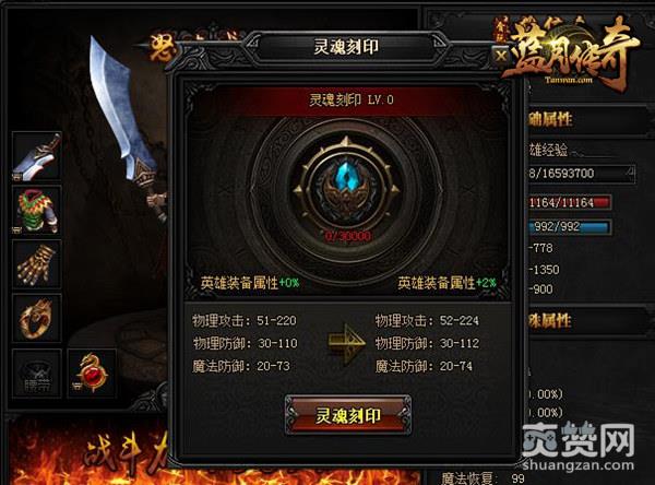 提升灵魂刻印等级,可以增加英雄装备附加给英雄的属性