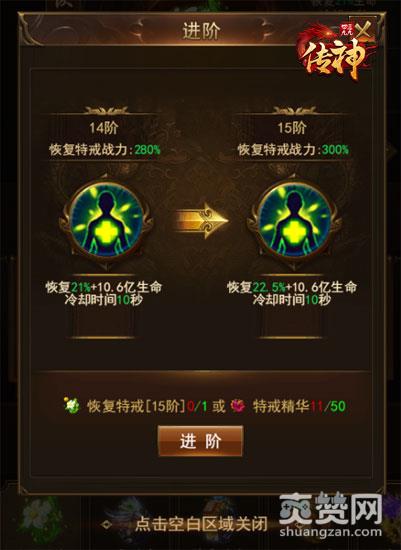 拥有特戒后还可以进行升级和进阶培养,升级需要消耗特戒碎片来升级,进阶则消耗特戒精华培养,培养特戒不仅能提升属性增益和战力,还能对特戒技能进行增强哦!