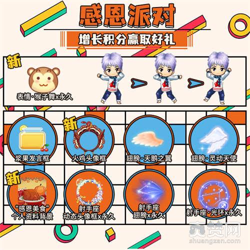 在活动结束后,各个队伍内累计通过接收道具增长游戏积分最多的前10名玩家,可领取“感恩排行榜”奖励!包含:射手座动态头像框、射手座翅膀、射手座光环。