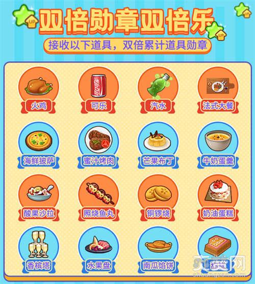 活动期间,接收以下非绑定的道具,将能够以双倍数量累计道具勋章!