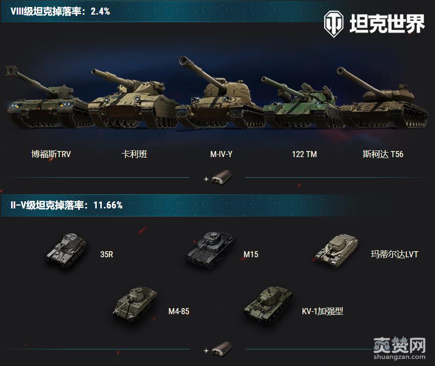 这次的奖励中包含了三辆全新的8级坦克,他们分别是V系重坦博福斯TRV、Y系重坦卡利班与M系重坦M-IV-Y,并且总计能获得11款独特的3D风格。