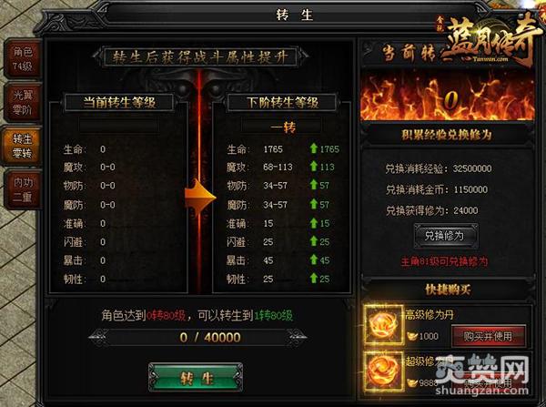 玩家在80级可开启转生系统,通过点击角色按钮可进入转生界面: