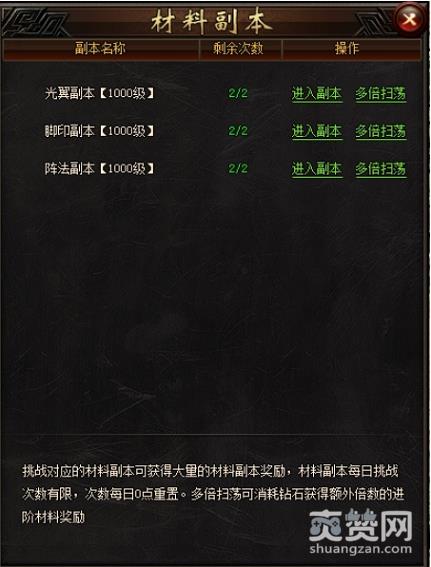 材料副本是进阶材料的主要获取途径,但也能通过野外掉落或商城购买获得进阶材料。