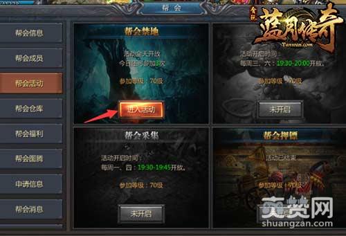 帮会禁地可在进入帮会后点击帮会-帮会活动-进入活动中开启,玩家们可以选择自己创建小队或者加入其他玩家的小队一起组队通关班会禁地。