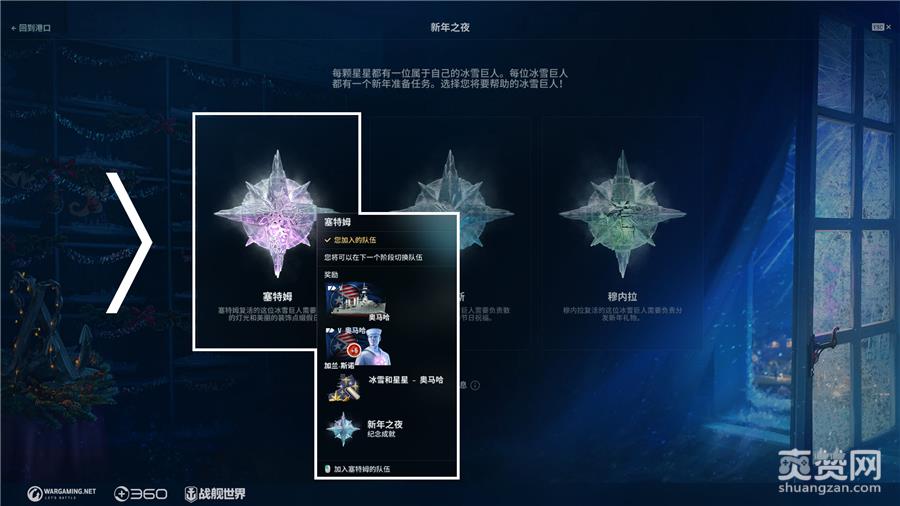 不同团队带来的奖励是不一样的,包括所选团队的独特指挥官——雪巨人以及附带“冰雪和星星”永久涂装的V级战舰。如果想把奥马哈、猎兵和加富尔伯爵三艘战舰全部收入港口,就需要在不同阶段开始时,选择加入自己尚未拥有的庆典活动团队。