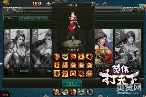 洪芝:游戏里面我们可以选择五个门派,群攻效果出众的明教、暴击能力强的华山、持续远程职业唐门、奶妈门派药王和肉职业崆峒。每个门派的技能都是贴合门派的,虽然可以更换门派,但是门派技能还是需要重新收集技能书激活的。如果有跟我一样喜欢参加八点半活动的小伙伴,最好记得那些门派的技能,这样可以更好的克制对方。