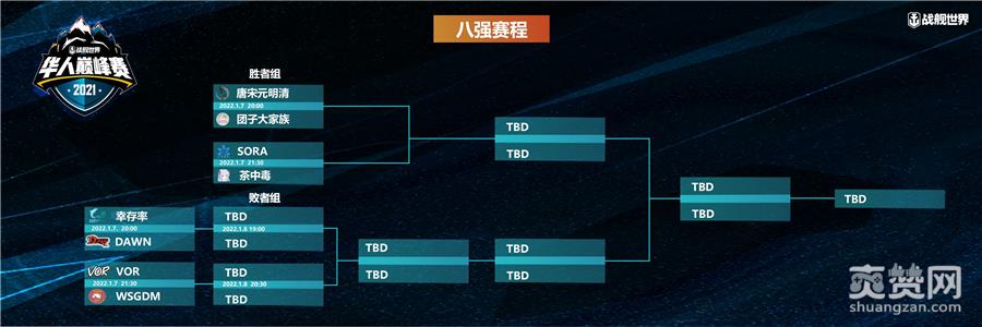 经过小组赛阶段的选拔,唐宋元明清、团子大家族、DAWN、幸存率、茶中毒、SORA、VOR、WSGDM等8支战队进入了本届《战舰世界》华人巅峰赛的最终决赛阶段。1月7日20点、1月8日19点、1月9日19点,连续三天的鏖战,8支战队中仅有一支能够站在最终的巅峰之上。