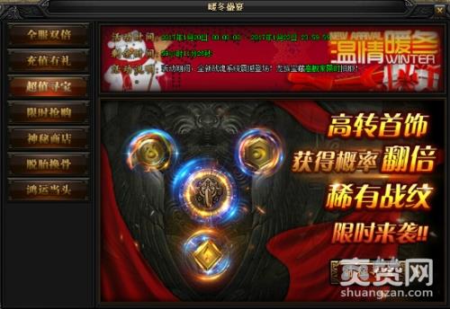 战纹活动时间:2017年1月20日00:00:00-2017年1月22日23:59:59 活动一:全服双倍 活动时间:2017年1月20日00:00:00 - 23:59:59 活动说明:活动第一天,全服双倍经验活动全天开启,海量经验轻松得。双倍经验效果可与多倍经验卷轴和VIP经验buff叠加!