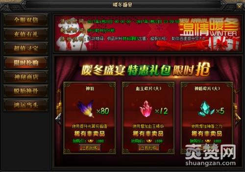 活动说明:活动期间,极品材料特价限时出售,超低价格,助你迅速提升实力!