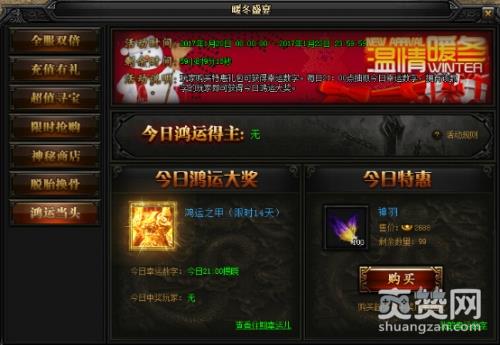 活动说明 : 玩家购买特惠礼包可获得幸运数字。每日21:00点抽取今日幸运数字,拥有该数字的玩家即可获得今日鸿运大奖。
