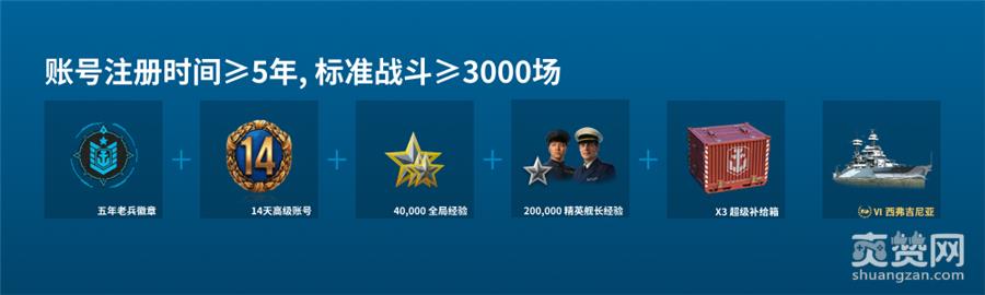 “身经百战”纪念礼将根据大家的注册时间及战斗场次来派发不同规格的答谢礼,如果您的注册时间≥,6年,标准战斗场数≥3000场,那么便可收获“传奇舰长”级别的奖励,内含6年老兵徽章、14天高级账号、全局经验、精英舰长经验、超级补给箱以及6级金币战舰西弗吉尼亚!若您的注册时间≥5年但不满6年,并同样奋战了3000余场,则可以获得内含5年老兵徽章的“高级舰长”级别奖励,而且同样可以斩获西弗吉尼亚号金币战舰哟,为您的新春征服之路提前筹谋提升硬实力!
