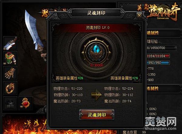 提升灵魂刻印等级,可以增加英雄装备附加给英雄的属性