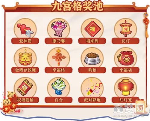 每局累计获得4份奖励:额外随机赠送一份:祈福宝袋、惊喜福袋、烟花