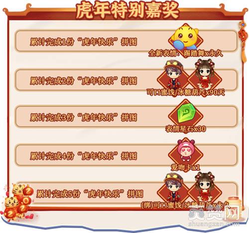 每额外集齐一份“虎年快乐”拼图,可获得“游戏币x88888”作为奖励!