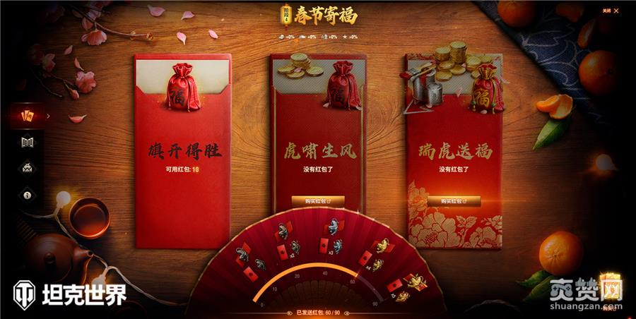 新春佳节即将来临,您可以在《坦克世界》中通过春节寄福活动发送并接收精美礼物。2月1日至2月15日期间,您可以获得红包并将TA们发送给您在游戏中的好友或随机玩家,红包含有能够提供大量游戏内加成的装饰。