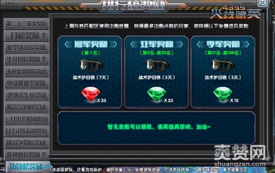 ①周榜:每日0点刷新排行榜,每周一发放奖励,上榜的玩家都可以获得不同天数的战术护目镜