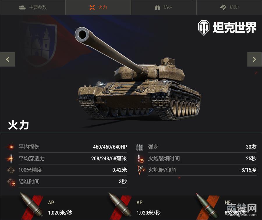 这辆备受坦克手们喜爱的前线战士搭载了一门130毫米的双连发弹夹炮,其具有460点的平均单发损伤,在所有8级重坦中可排进前三。再依靠较短的弹夹内炮弹装填间隔时间,您可在战斗中对敌人造成同样强劲的二连击。