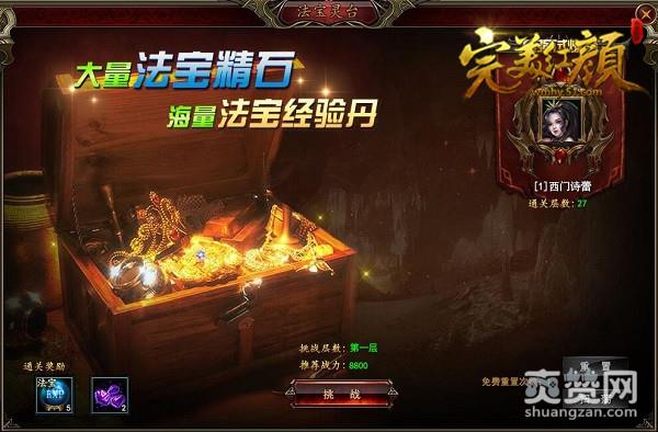 法宝系统,同样是《完美红颜》当中玩家最为重视的成长体系之一。通过《完美红颜》法宝系统,玩家可收集各种传说中的天地至宝为自己所用,从而获得极大的战力提升。同时,法宝还可幻化出实体的外形,时时刻刻跟随玩家,展现玩家的实力与个性。游戏中,玩家想要获得更强大的法宝,则在很大程度上依赖于法宝系统中的核心材料“法宝碎片”与“法宝精石”,而获取以上材料的最佳途径,则非“法宝灵台”莫属。《完美红颜》中,玩家可通过参与“法宝灵台”玩法,逐层挑战越来越强大的镇守妖魔,从而获取海量法宝材料。同时,与“披风幻境”近似,挑战成绩最佳者也将受到每个参与该玩法的挑战者的景仰!