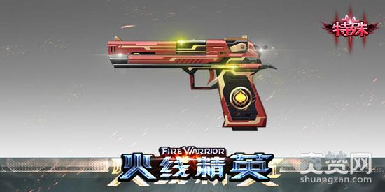 在沙漠之鹰的基础上优化而成的黑桃王牌主题限定武器。沙漠之鹰作为最受欢迎的副武器,在“黑桃”行动中恰好被大量库存在交战地点的武器库。在关键时刻被学院成员找到得以扭转火力差距。因此成为了本次黑桃王牌系列的武器成员。该武器按右键可以快速打空当前弹夹。