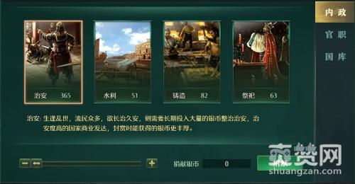 实际战况瞬息万变,有着不少以多胜少、以弱胜强、绝地反击的经典战役,在策略游戏卧龙吟的主城中,随着主城的等级会开放对应的功能,比如策略府提升战力科技、校场提升武将等级、酒馆招募各类武将等等, 当然必不可少是我们的国政,在国王产生后,会根据排名的先后安排7位官职。内政会分4种科技可以供各位主公开发,分别为治安、水利、铸造、祭祀,捐献一定的银两可以提高国家科技的研发度,捐献的同时也可以获得政绩,当国家科技研发越高,国王封赏天下时,获得奖励也会越高哦。