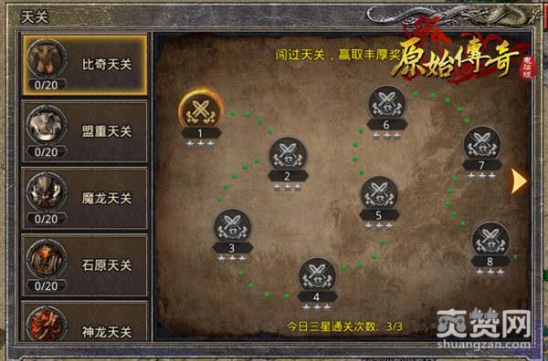 当玩家升到42级时,讲会开启勇闯天关任务,奖励为血魔精华,技能书页,金币等,随着关卡的提高,奖励也越来越丰富,只能三星通关才能开启下一关,并且每天只有三次三星过关的机会。