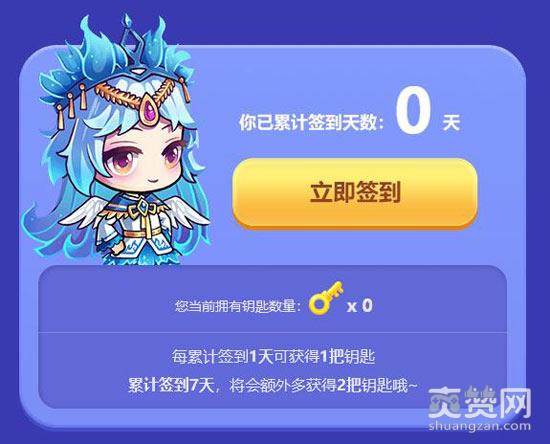 每累计签到1天可获得1把钥匙;累计签到7天,将会额外多获得2把钥匙哦~