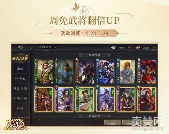 5月23日—5月29日,周免武将翻倍UP,强力武将免费玩,助力新赛季。