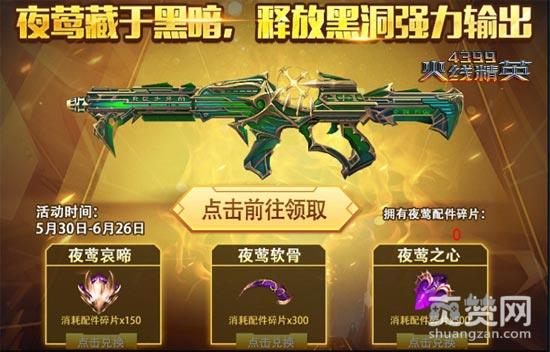 为了尽可能实现“夜莺”的最大效用,精英学院特意推出限时活动推广了夜莺的武器和相关配件的供给。只要拥有夜莺,在学院完成任务,就能顺利升级武器!活动时间为5月31日-6月26日。