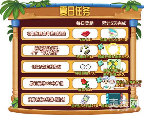 活动期间,完成夏日任务,领取特别奖励!当同一个任务累计5天都完成时,我们还会按照派对的规定,给予您更加丰厚的奖赏!