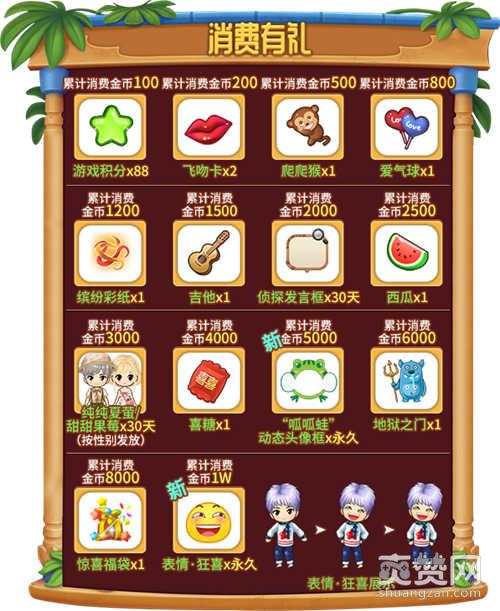 活动期间,根据您消费金币的数量,获得不同奖励!